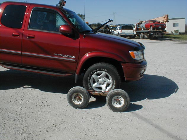 Towing dollies pick up the end of the vehicle not supported by the Tow Truck and Go-Jacks allow you to maneuver a disabled car in a parking lot or out of a garage in order to position for the Tow truck hookup